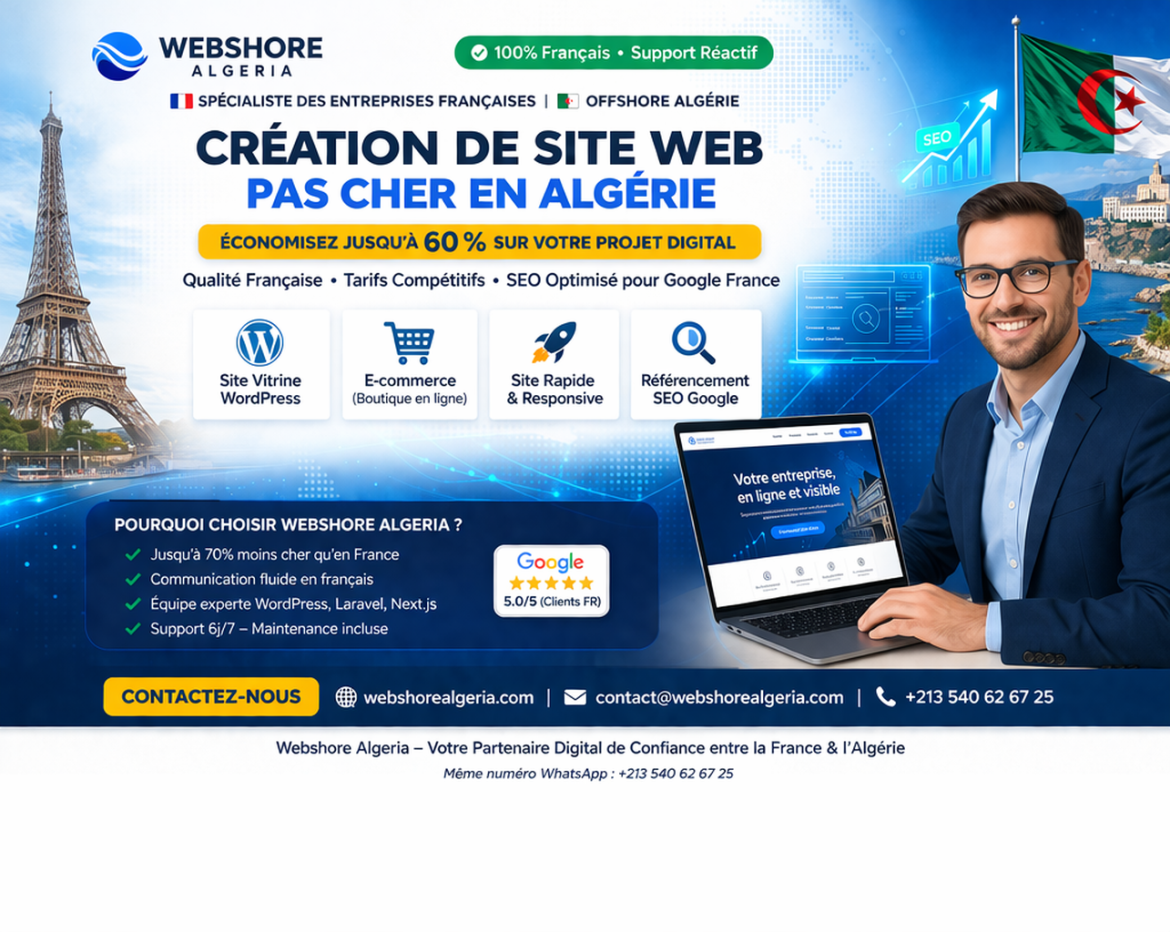 👉 Avec Webshore Algeria, vous bénéficiez d’un site performant, optimisé SEO et adapté au marché français.